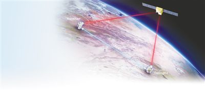 图为“墨子号”在新疆南山和青海德令哈两个地面站间分发量子纠缠示意图。