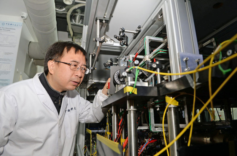潘建偉院士在中國科大量子存儲實驗室內了解科研情況。(新華社資料圖片)