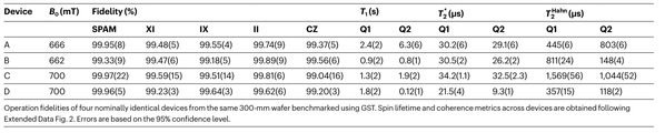 与以往只展示单个高性能器件的实验室演示不同,本研究突出了一致性与可重复性——四个器件的性能高度接近(如表1),这表明在工业条件下生产的硅自旋量子比特芯片也能做突破容错阈值的量子操控,为硅自旋量子计算芯片的规模化奠定了基础。