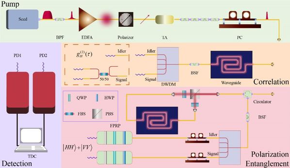 作为核心器件的量子光源其性能直接决定了整个量子系统的可扩展性和实用性。常用的基于非线性自发参量过程制备量子光源的方案一般采用具有高相干性的激光作为泵浦源,这导致光源品质对激光性能的依赖,增加了整个光学系统的复杂性和成本。另一方面,窄线宽的相干激光会诱导不必要的频谱关联,限制了生成量子态的频谱纯度。