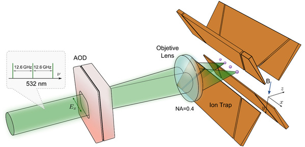 这项技术的创新之处在于其与光镊门的良好兼容性——因为光镊操作本身就是横向运动,并且显著简化了光路配置,使得光镊门方案在实验上具有极高的可行性,为实现大规模、可扩展的离子阱量子计算提供了更简洁、更灵活的路径。论文审稿人对该工作给予高度评价:“该论文展示了光镊与线性离子链的成功结合,提出了一种巧妙而强大的机制,通过它可以在任意离子对之间实现两比特门操作……”“实现这一类型量子门的结果令人鼓舞,该方法解决了离子阱量子计算规模化中的一个重要挑战……”。
