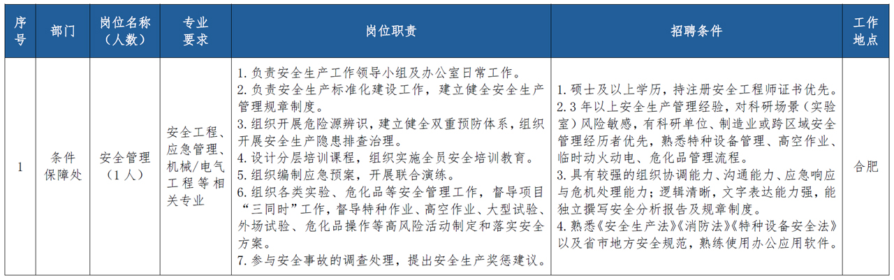 安徽省海德人力资源服务有限公司与录用人员签订劳动合同,劳务派遣至合肥国家实验室综合管理部门工作。