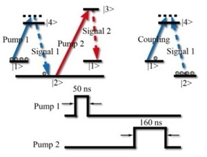 光子的轨道角动量产生于电磁波的螺旋相位面,最常见的携带轨道角动量的光是Laguerre-Gaussian模式光。这种光的波前是一个螺旋面,围绕中心的奇点,光的位相是不断增加的,同时光强也具有特殊的空间分布,不同的轨道角动量对应着不同的光强空间分布,可以构成一个无限维的完备的Hilbert空间。将光子编码在轨道角动量空间可以大幅度增加光子的信息携带量。此外,利用光子的高维编码态还可以提高量子密钥传输的安全性,实现诸如量子全息隐形传态、量子镜像密集编码、全息量子计算等量子信息协议,还可以应用于量子力学基本问题的研究。远距离量子通信的实现必须借助于一系列的量子中继器,其中量子存储单元是构成量子中继器的核心。通过在相邻存储单元之间建立量子纠缠,利用量子纠缠交换技术就可以实现量子中继,进而拓展信息传输的距离。因此实现大信息量、长距离的量子信息传输首先必须解决的关键问题就是量子高维纠缠的存储。尽管人们已成功实现了携带轨道角动量信息的单光子存储,但到目前为止有关轨道角动量纠缠存储方面的研究仍然是一片空白,是量子信息领域中的一个热点研究领域。