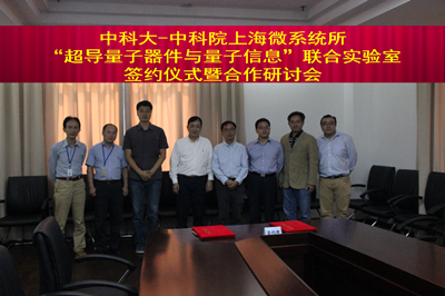 10月9日,中国科大与中科院上海微系统与信息技术研究所在上海微系统所举行了双方共同成立超导量子器件与量子信息联合实验室的协议签署仪式。中国科大常务副校长、中科院量子信息与量子科技前沿卓越创新中心主任潘建伟院士与中科院上海微系统所所长、中科院超导电子学卓越创新中心(筹)主任王曦院士代表双方签订了联合实验室合作协议。