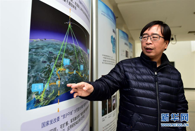 2月25日,潘建伟在中国科学技术大学实验室外介绍科研情况。