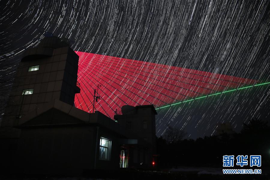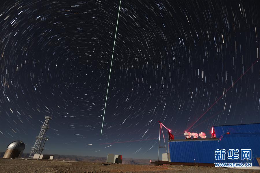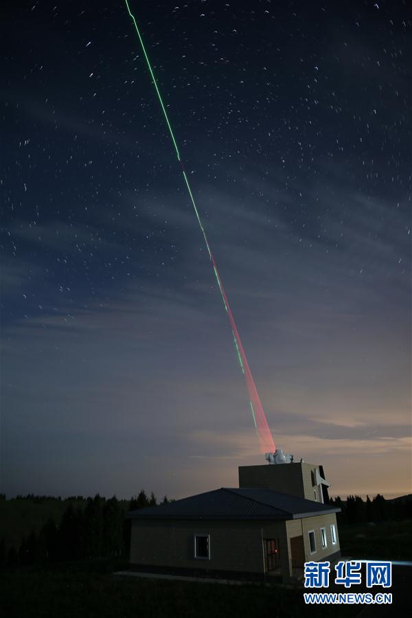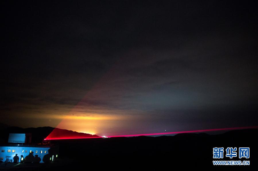 2016年12月22日,丽江量子通信地面站望远镜发射红色信标光,“等待”“墨子号”过境。