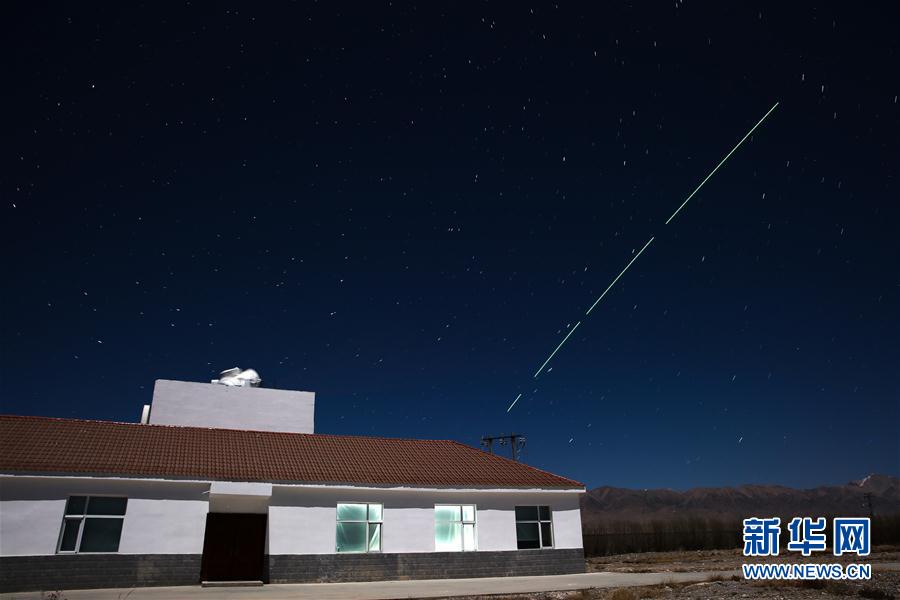 2016年12月10日,在西藏阿里观测站,“墨子号”量子科学实验卫星过境,科研人员在做实验(合成照片)。