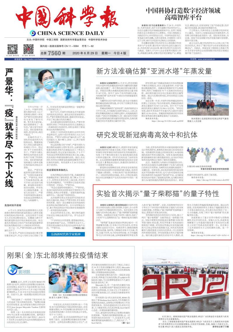 《中国科学报》 (2020-06-29 第1版 要闻)