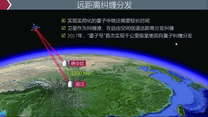 “墨子号”有三大科学实验任务。一是星地间量子密钥分发,即在1200公里的距离上,目前每秒可点对点发送十万个安全密钥,这比相同距离的光纤传输速率提高了20个数量级。二是实现了德令哈到乌鲁木齐、德令哈到丽江之间,相距约1200公里的量子纠缠分发。三是实现了上千公里的量子隐形传态。这些工作在2017年完成后,“墨子号”就实现了天地之间的量子通信,再加上“京沪干线”所实现的千公里级光纤城际量子通信网络,共同构成了天地一体化广域量子通信网络的雏形——这是国际上量子信息领域两个标志性事件之一。