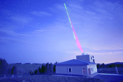 “墨子号”量子科学实验卫星过境,乌鲁木齐南山观测站科研人员在做实验(合成照片)。 新华社发