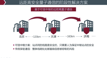 基于可信中继技术,中科大量子通信团队在2007年首次把光纤量子通信的安全距离拓展到100公里。2008年,我们建设了一个小型网络,2012年又建成了规模化的量子通信网络,并投入了永久使用。最后,我们逐步把这些局域网连起来,变成了现在的“京沪干线”。将来,量子中继可能是最终解决远距离量子通信问题的路径之一。