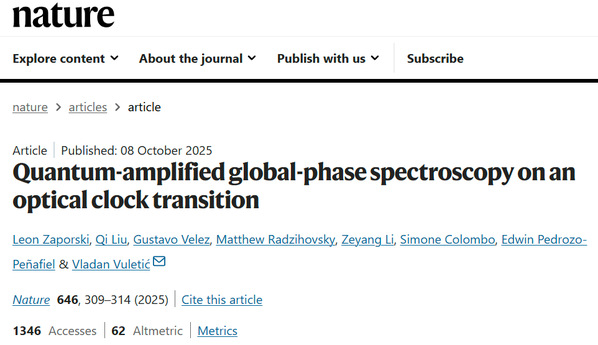 [1] Zaporski, L., Liu, Q., Velez, G. et al. “Quantum-amplified global-phase spectroscopy on an optical clock transition”, Nature 646, 309–314 (2025).