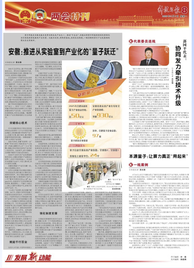 2026年全国两会,量子科技话题备受关注。多位来自安徽省的代表、委员在接受媒体采访时,围绕量子技术攻坚、成果转化等建言献策。