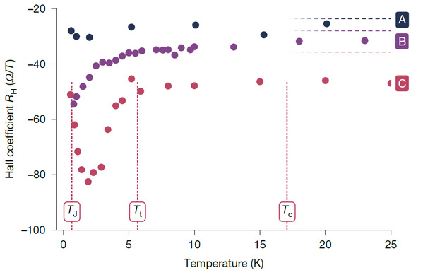 另一项显著的发现来自霍尔效应的异常。在处于相变边缘的弱绝缘体中,霍尔系数在低温下并未表现出简单的载流子冻结,反而增长并发生反转。这种非单调行为暗示了费米面重构的可能——在强关联作用下,材料的能带结构发生了变形。这一迹象表明,在这个人工构建的二维晶格中,可能存在着某种超越简单莫特绝缘体的新奇量子态。不过,研究团队对此保持审慎态度,指出实验样品中存在的化学势无序(chemical potential disorder)或其他非关联效应也可能对霍尔系数产生复杂影响,因此确切的物理机制仍需进一步验证。