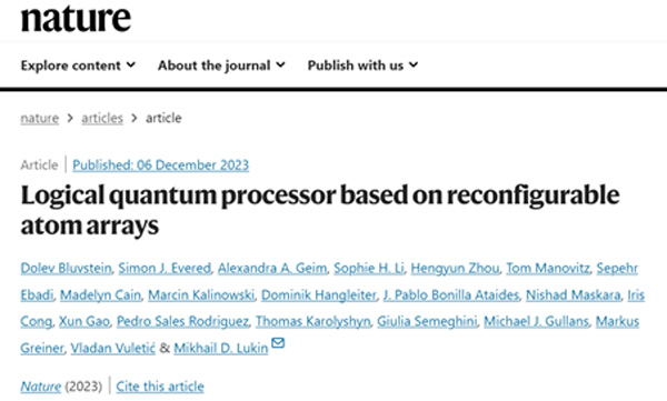 © Nature研究论文以《基于可重构原子阵列的逻辑量子处理器(Logical quantum processor based on reconfigurable atom arrays)》为题发表于《自然》杂志。
