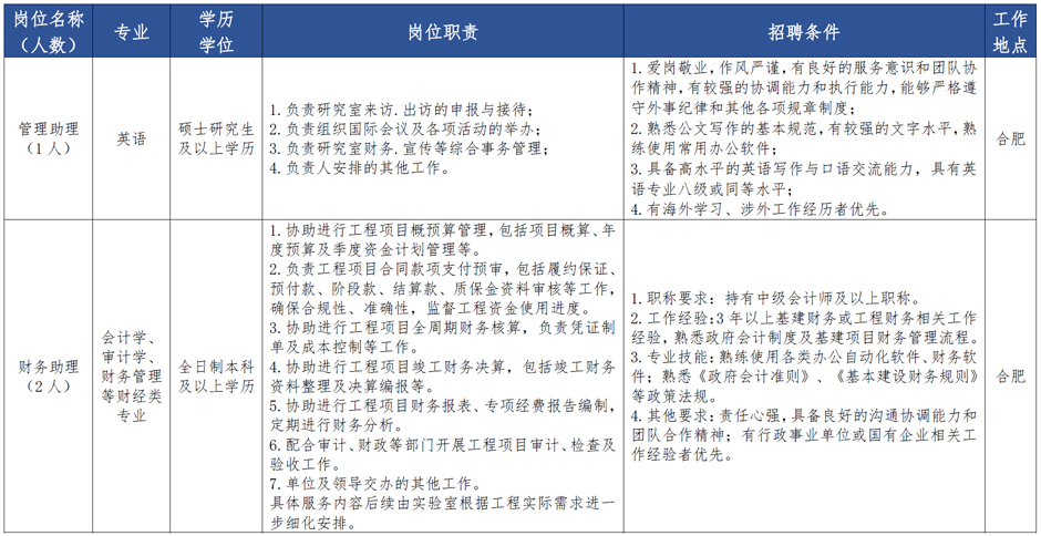 中智安徽经济技术合作有限公司与录用人员签订劳动合同,劳务派遣至合肥国家实验室研究部门工作。